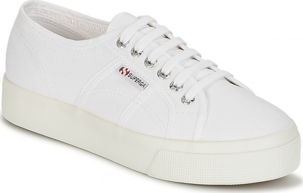 2730 Cotu γυναικεία λευκά sneakers από την Superga, με βαμβακερό πάνω μέρος που επιτρέπει στο πόδι να αναπνέει και διπλό πάτο.